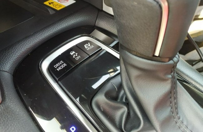 Повертаючись до режимів руху, є можливість окремою кнопкою обрати суто електричний режим, коли ДВЗ взагалі не вмикається. Королла Кросс рухається лише за рахунок електродвигуна, який живиться від літій-іонної батареї (раніше в гібридах Тойоти використовували літій-металогідридні батареї, які були більші та важчі на 14%). В нового Corolla Cross Hybrid батарея має ємність 4,08 Ампер*год. Вона складається з 60 комірок, кожна з яких видає по 3,7 вольта.